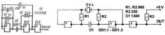 При конструировании устройств на цифровых микросхемах нередко возникает задача построения генератора прямоугольных импульсов с теми или иными характеристиками. Данная статья призвана помочь конструктору-любителю подобрать схему задающего генератора той или иной степени сложности и необходимых характеристик.