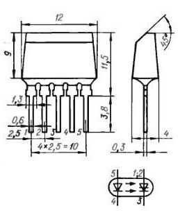 Тиристорные оптопары ОАУ115А, ОАУ115Б, ОАУ115В, ОАУ115Г, ОАУ115Д состоят из арсенид-галлиевого ИК излучателя и кремниевого фотодинистора в одном крпусе. Ключом при определении цоколевки служит верхняя по рисунку часть корпуса, скошенная под углом 45 градусов.