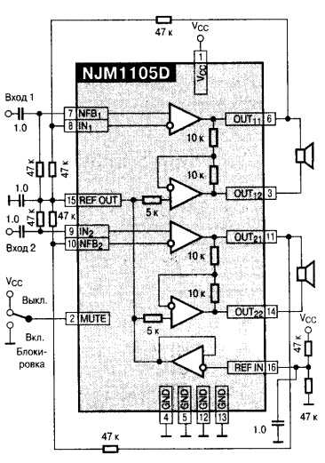 Двухканальный усилитель низкой частоты NJM1105D/M
