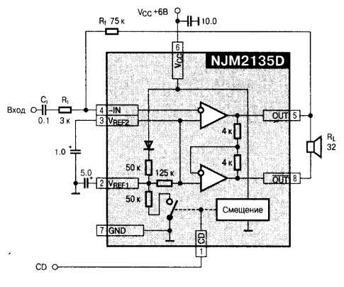 | (Vcc=6 В, Rн = 32 Ом, КНИ = 10%) |